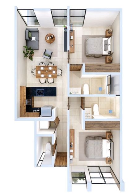 MODELO B: Entre 76.79m2 y 78.43, nivel 1 y nivel 2 disponibles. 2 Habitaciones + 2.5 baños + Balcón (0.91m2 y 1.69m2 en promedio)