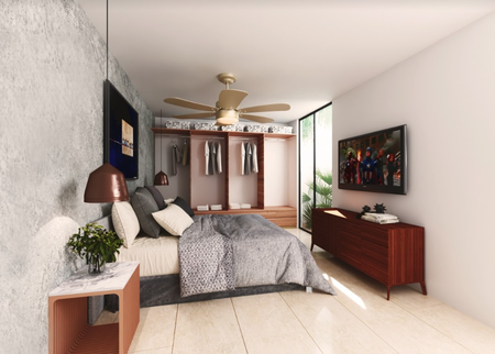 • Recamara , con área de closet con estructura y cajoneras, hamaqueros, baños completos, meseta de mármol