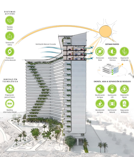 Primer desarrollo sustentable en Cancún en donde todos los departamentos cuentan con vista al mar, ventilación cruzada y acceso directo de elevador al departamento, además de contar con elevador de carga.