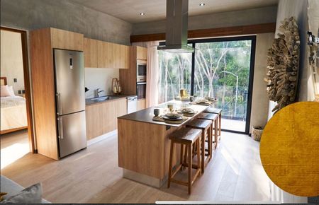 Descubre la perfecta combinación de lujo, confort y naturaleza en este exclusivo departamento ubicado en un prestigioso complejo con un diseño inspirado en la armonía del entorno y las más altas calidades de construcción, este departamento te ofrece un estilo de vida único en el corazón de Tulum.