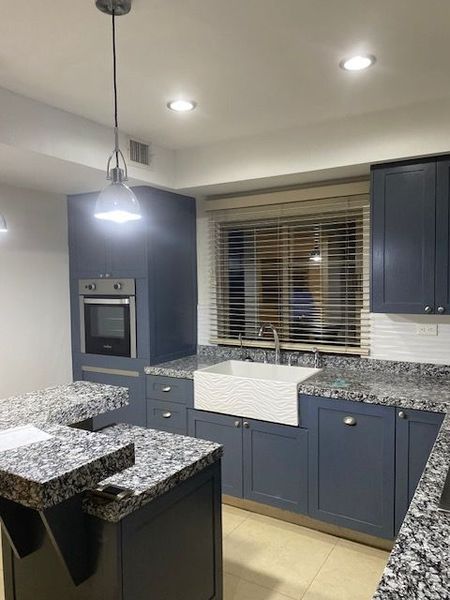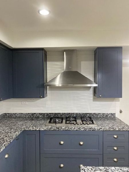 Cocina Integral equipada con tarja doble de cerámica, llaves y accesorios nuevos y Granito, Alacena, estufa, campana.