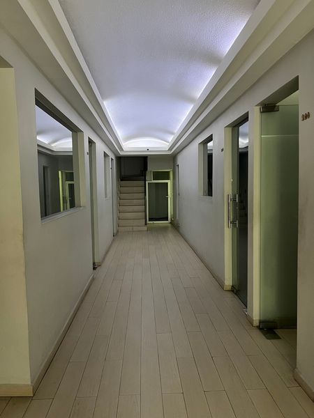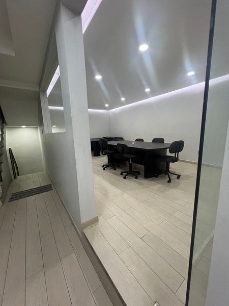 En primer planta tiene el Lobby con una Sala de Juntas y 4 oficinas independientes de 3x3m2 y 5x3m2 ; y un baño común que da servicio a esa planta.