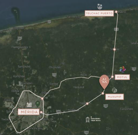 Aina se encuentra en Muxupip, ubicado en la zona norte de Yucatán, con una conexión rápida a la costa de Telchac a 20.8 km. A su vez, se conecta por tierra con municipios de gran importancia como Motul, un pueblo mágico ubicado a 6 km al norte, donde encontrarás una oferta de servicios. La conectividad y privacidad que se combinan en la ubicación de Muxupip lo convierten en la locación perfecta para una propiedad campestre, de retiro, de renta o vacacional.