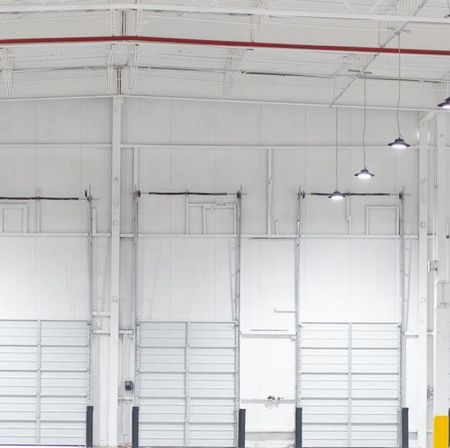 Andenes: 3 andenes deprimidos para tráiler de 53 pies con nivelador mecánico, (30,000 lbs.), bumpers y puertas de andén.