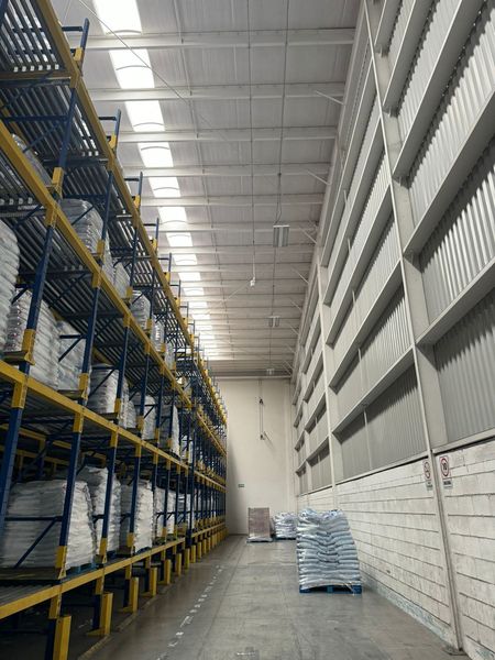 Iluminación: Luz natural con estándares LEED y Luminarias LED tipo high bay suspendida 300 Lux/m².