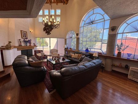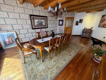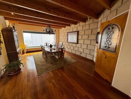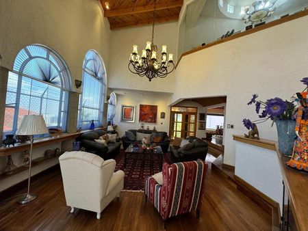 Medio nivel más arriba se encuentra una terraza techada de 70 m² para fiestas, reuniones o usos múltiples, dependiendo la ocasión con un jardín inmenso, aprovechando de qué Tu Casa se encuentra en un bello para páramo panorámico goza de preciosa jardinería de un ambiente de mucha paz, en la planta alta, te recibe un gran vestíbulo con Linternilla y con vista a la sala principal tipo Mezannine.