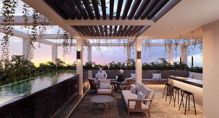 Difruta de los mejores momentos en un roof top, equipado con alberca, bar y salas y mesas para las mejores reuniones