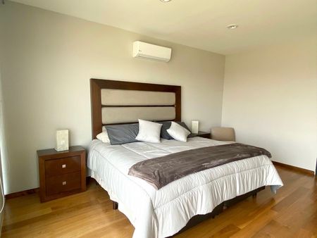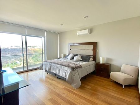 Increíble departamento con acabados de lujo. Ubicado en el desarrollo Wise living de 165 m2 con aire acondicionado y calefacción, 2 recamaras, la principal con vestidor, cuarto de TV, balcón con vista a la cañada, cuarto de servicio con baño completo. Amenidades: Alberca infinita, cancha de pádel, áreas verdes y salón de fiestas.