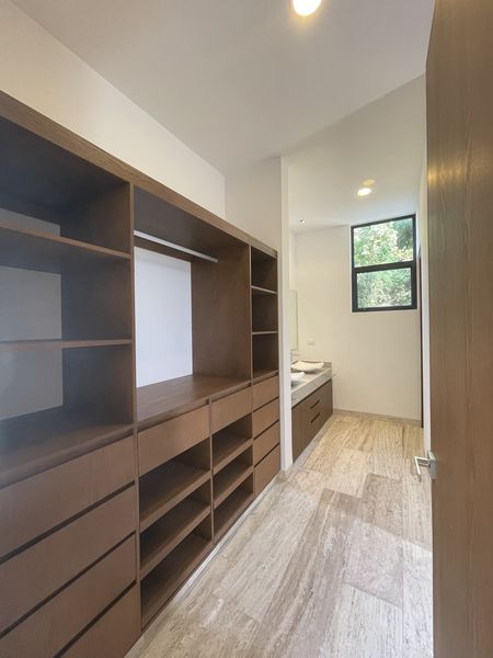 - Recámara (puede ser ppal) con walkin closet muy amplio con su baño completo y doble lavabo, cuenta con salida al jardín