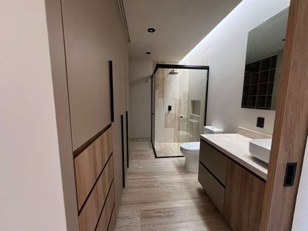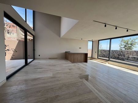 PB: Estacionamiento para 3 autos, estudio (ó 4ta recámara), baño, sala, bar, comedor, cocina equipada, alacena, terraza, patio interior, bodega y jardín.