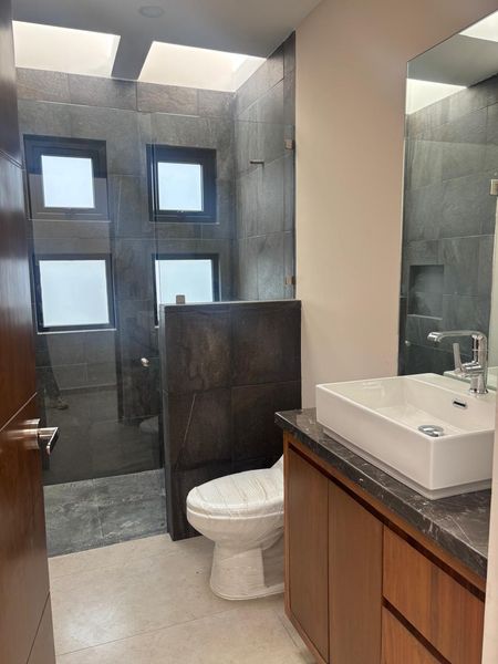 CASAS NUEVAS EN CONDOMINIO HORIZONTAL ENTREGA INMEDIATA, SOLO 5 CASAS 296m2, cuenta con 3 amplias recámaras, la principal con baño y vestidor, 2 recámaras secundarias que comparten baño, en el caso de la casa 3 con 2 recámaras amplias con baño cada una, amplia estancia sala comedor, cocina integral cubierta de granito y una isla antecomedor, cuenta con una alacena/pantry, medio baño para visitas, estudio o sala de TV, cuarto de servicio con baño y cuarto de lavandería, 2 lugares de estacionamiento y jardín privado. Cisterna agua potable 5,700lts Cisterna agua pluvial 4,400 lts.