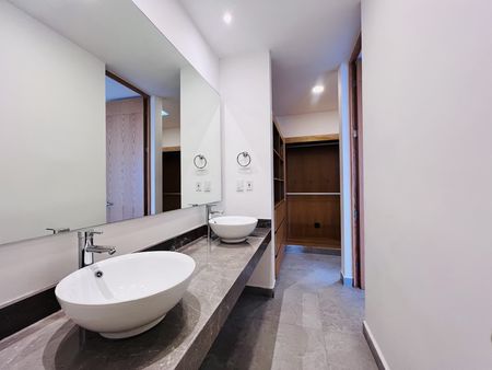 Recámara principal con área de closet vestidor, baño complete y balcón
