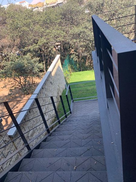 Vestíbulo grande y agradable con baño de visitas elegante, recibe hacia una elegante estancia que divisa precioso horizonte boscoso de vistas ininterrumpidas. Un ambiente tan bello que todo mundo atrae. Se abre a una gran terraza panorámica para aprovechar el aroma a bosque del lugar. Plafón de vigas expuestas impecablemente restauradas con iluminación led entre cada una de ellas. Una rareza encontrar tan original diseño vintage moderno. Comedor grande integrado a sala para la convivencia social abierta e integrada. ofreciendo amplio espacio para una cena festiva.