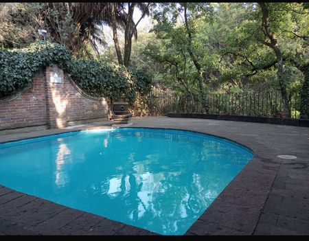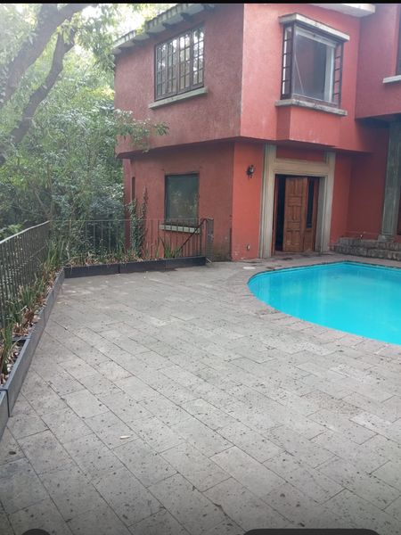 CASA EN PRIVADA ESTILO COLONIAL MEXICANO, CUENTA CON SALA-COMEDOR, COCINA, TRES RECÁMARAS CON BAÑO, SALA DE TV, ESTUDIO, JARDÍN Y ALBERCA / LA CASA TIENE UNA EXCELENTE VISTA HACIA EL BOSQUE QUE ES UNA RESERVA ECOLÓGICA, CUARTO DE SERVICIO CON ENTRADA INDEPENDIENTE, BODEGA