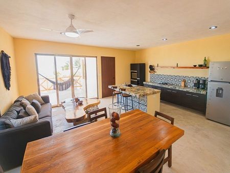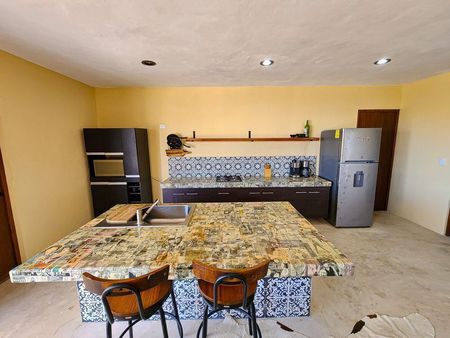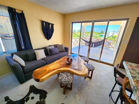 Ubicado a unos metros de la playa de Chicxulub, una de las playas más hermosas de Yucatán. Departamento equipado y acondicionado con todos los servicios.