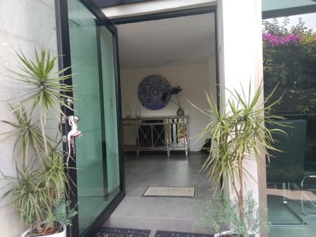 • Puerta de entrada en cristal templado, que realza la modernidad y el estilo refinado de la casa.
