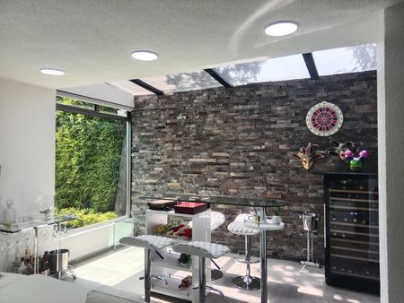 • Alberca privada, rodeada de un muro de pasto sintético que realza la estética del área y crea un oasis de relajación.