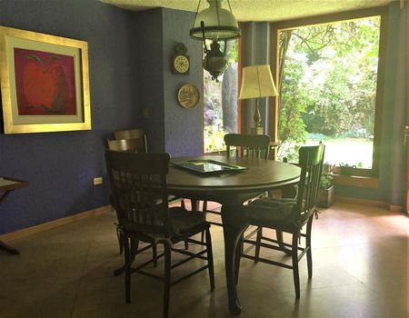 En el exclusivo Barrio de Tlacopac San Ángel se encuentra esta magnífica residencia, enmarcada de un espléndido jardín con árboles maduros, la casa tiene hermosas vistas y una estupenda arquitectura, gran sala comedor con chimenea y piso de madera, antecomedor, 4 recámaras , master suite con vestidor y jacuzzi, espectacular biblioteca , oficina independiente , 2 cuartos de servicio con baño , lavandería, 5 lugares de estacionamiento, cabe mencionar que se encuentra localizada en una calle cerrada con circuito de vigilancia cerrado. Atención inmediata y personalizada.