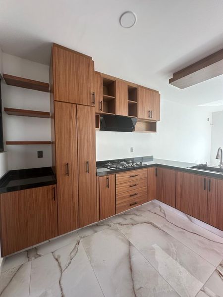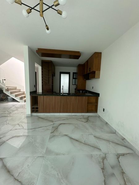 En planta baja encontrarás estancia-comedor, cocina equipada, baño de visitas, jardín interior con asador, patio de servicio y estacionamiento para dos autos.
