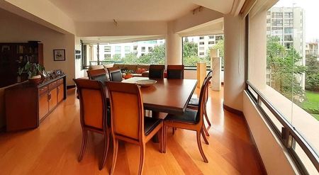 Los 297 metros son habitables mas metraje de bodega y estacionamientos. Dos elevadores y un tercero para servicios. Puerta de entrada para servicios.