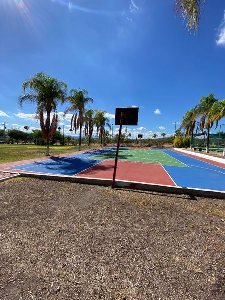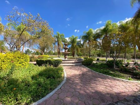Situado dentro de un fraccionamiento con un casco de Hacienda, cuenta con amenidades como, albercas con agua termal, restaurante, hotel en la misma hacienda , cancha de tenis, canchas de basquetbol y fútbol y hotel nuevo frente a las albercas.