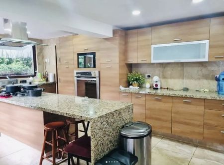 Cuarto de servicio con baño completo, área de lavado y planchado, bodega de almacén. 4 amplios lugares de estacionamiento