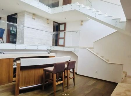 Espaciosa estancia generosa amplitud con acabados de lujo y buen gusto se abre a terrazas panoramicas para convivir y dominar entorno. Rincón bohemio conformado por elegante bar. con plafón a triple altura bañado de luz cenital. Vanguardista cocina integral equipada con isla, amplia despensa, alacena, encimeras y gabinetes, ideal para el chef en casa amante de la gastronomía de autor y la buena mesa. Encantador ante-comedor perfecto para encuentros sociales.