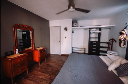 Este encantador departamento te ofrece una experiencia excepcional. Relájate en la espaciosa habitación principal con una lujosa cama King size memory foam y un elegante tocador de madera. El baño presenta una impresionante tina de mármol para disfrutar de un baño relajante.