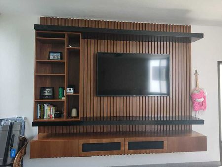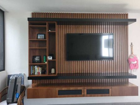 3era recámara principal con closet para tv de madera empotrado, aire acondicionado, ventilador de techo