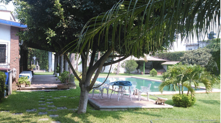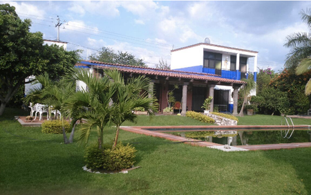 CASA DE CAMPO EN VENTA AMUEBLADA Y EN LAS CONDICIONES EN LAS QUE SE ENCUENTRA, UBICADA EN CUAUTLA MORELOS A 8 MIN DEL CENTRO DE LA CIUDAD. PROPIEDAD EN TERRENO EJIDAL DE 1828.00 M2 Y CON UN ÁREA CONSTRUIDA DE 470.00 M2 QUE CONSTA DE: CASA PRINCIPAL: ESTANCIA, COMEDOR, COCINA, 6 RECAMARAS, 4 BAÑOS COMPLETOS, CUARTO DE SERVICIO, BODEGA, PATIO DE SERVICIO Y LAVADO, TERRAZA PRINCIPAL. CASA DE SERVICIO Y COMERCIO: CASA DE CUIDADORES (ESTANCIA, COMEDOR, COCINA, DOS RECAMARAS, BAÑO COMPLETO, ÁREA DE LAVADO, ESTACIONAMIENTO EXTERIOR PARA DOS AUTOS), ESTUDIO Y JUEGOS, BODEGA DE MANTENIMIENTO Y GUARDA, DOS LOCALES COMERCIALES CON BAÑO CADA UNO. ÁREA EXTERIOR: JARDÍN DE 1000 M2, ALBERCA CON CALDERA Y SISTEMA DE ASPIRADO, 1/2 BAÑO, ÁREA DE REUNIÓN, ASADOR, ALTAR, FUENTE, COCHERA PARA 8 AUTOS, JARDÍN EXTERIOR. 2 POZOS ARTESANOS, CISTERNA 8 M3. PRECIO: $8,400,000 AL SER TERRENO EJIDAL, SE LE PAGA AL JEFE EJIDAL POR CADA METRO CUADRADO ENTRE $10 Y $14 PESOS.