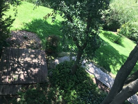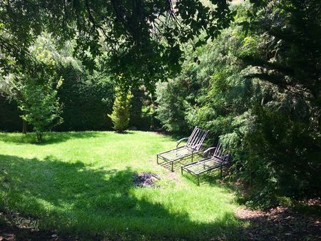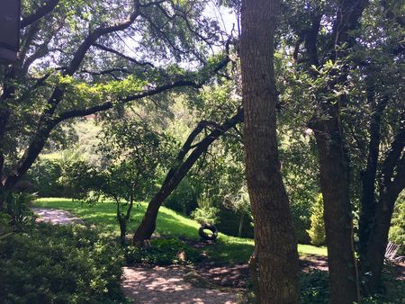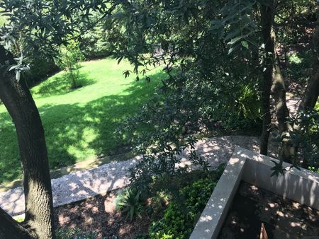 La casa cuenta con áreas iluminadas y hermosas vistas arboladas.