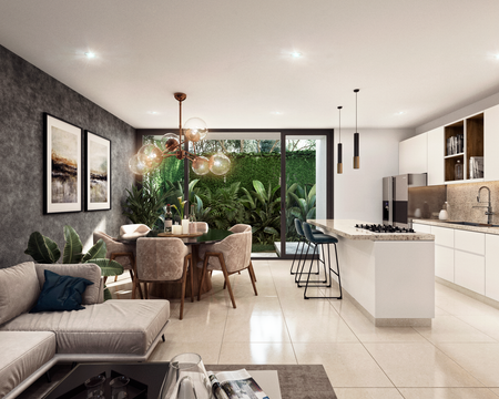 de primera, reunidas en una privada con amenidades. La barda perimetral y su caseta de acceso restringido nos dará la tranquilidad de que nuestro patrimonio y familia estén seguras. También cuenta con cajones de estacionamiento para visitas y áreas verdes que le darán amplitud y confort al desarrollo.