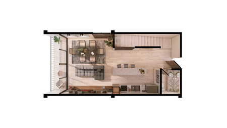 Sala, Comedor y Cocina en concepto abierto