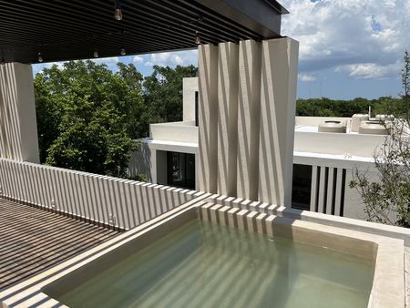 Roof top con Jacuzzi, Área Grill, 2 medios baños (para hombres y mujeres), área de convivencia y sala de exterior