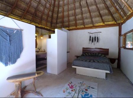 3 cabañas ecológicas de 25 m2, construidas con materiales locales. Dos de ellas