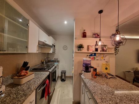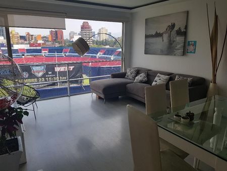 Distribuido en 2 niveles, 189 m2 con terraza, piso 6 con vista al estadio Primer nivel: 2 recámaras (recámara principal con balcón), 2 baños completos, estancia, cocina abierta Segundo nivel: family room (se puede adaptar 3a recámara), 1 baño completo, terraza con bar y excelente vista, cuarto de servicio con baño, área de lavado amplia, 2 estacionamientos independientes muy amplios. Amenidades: gimnasio y salón de eventos con cocina y baños.