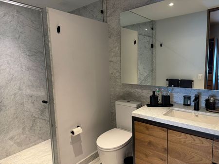 Gym, vapor y regaderas, 2 salones de uso múltiples, cafetería con servicio al departamento