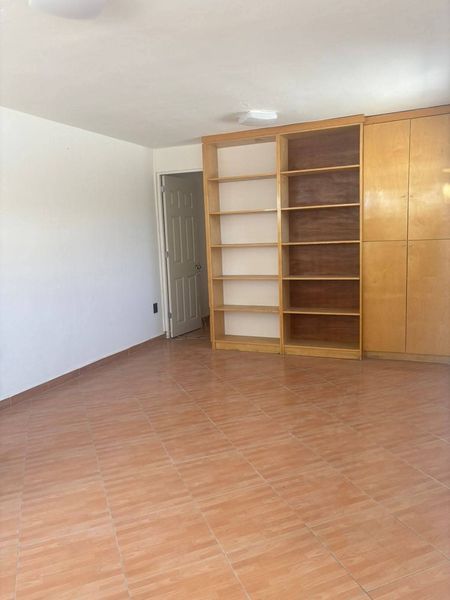 Cuenta con baño y estante para archivos