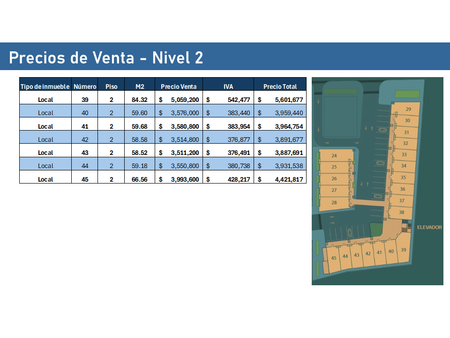 Locales disponibles en 2do Nivel desde los 57 m2 hasta los 94 m2.
