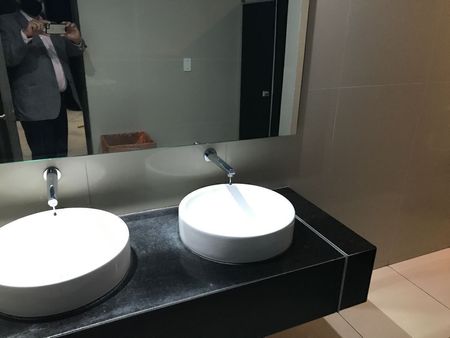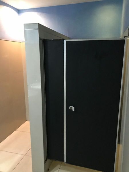 Baños en pasillo con excelente servicio de limpieza. Acceso controlado 24/7