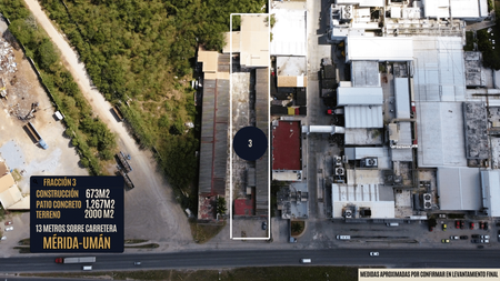 Nave/Terreno Inusdtrial en esquina con frente a Carretera Mérida-Umán