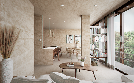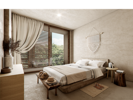 Estos departamentos de 1 y 2 habitaciones están diseñados para ofrecer comodidad y lujo en un hermoso entorno natural. Ofrecen una amplia distribución abierta con cocina, sala de estar y comedor llenos de luz que se abren a un balcón privado. Las unidades en planta baja tienen una terraza privada con una alberca de inmersión. Todas las residencias modernas cuentan con materiales naturales y acabados de primera calidad que son duraderos y fáciles de mantener. Se ofrecen a la venta sin muebles pero equipados con aire central.