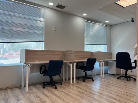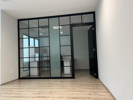 Excelente oficina corporativa amueblada en renta; edificio muy bonito, 150mts, 1 privado, sala de juntas, área común de trabajo, archivero, espacio para cafetería. 4 lugares de estacionamiento. Vigilancia 24/7
