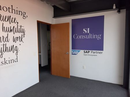 Cuenta con dos privados, pequeña área para recepción y baño interior.