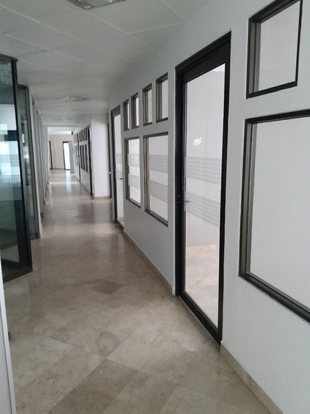 Cuenta con 677m2 distribuidos e la siguiente manera, recepción, 12 privados. despacho principal con espacio para sala de juntas, terraza privada y 4 áreas grandes para colocar estaciones de trabajo. La altura de 4mts