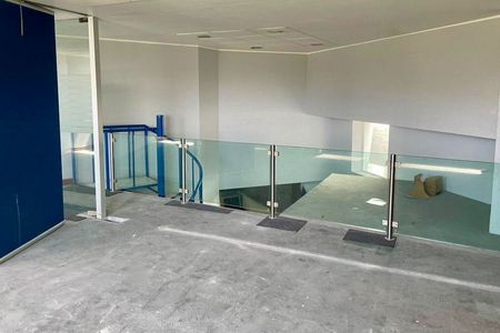 Cuenta con 179m2 de superficie, área de trabajo o atención al público, oficina, cocineta, sink, cuarto de máquinas, 2 baños para hombres, 2 baños para mujeres y mezzanine con mamparas, bodega y escalera de caracol.