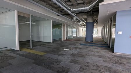 Multi oficinas privadas con diferentes dimensiones, área de juntas amplia, pasillos para estaciones de trabajo, auditorio, zona de coffe, zona de copiadoras y archivo, comedor amplio con cocina integral, cuarto de Site, cuarto de servicio, baños para damas y caballeros, pisos de alfombra de trafico pesado.