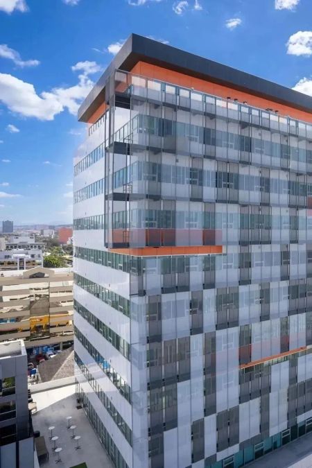 La Torre Península cuenta con certificación LEED gracias a su inteligente diseño sustentable que permite un uso eficiente tanto de los espacios como de la energía. Por ejemplo, la fachada con mayor exposición al sol cuenta con una segunda piel que brinda control térmico.