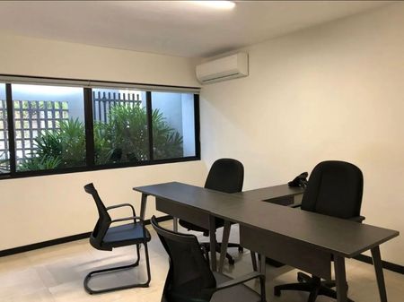 - Amueblada con un escritorio tipo L, una silla ejecutiva y 2 sillas auxiliares
