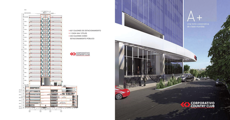 LA TORRE CORPORATIVA COUNTRY CLUB OFRECE SEGURIDAD LAS 24 HORAS, UNA GRAN CANTIDAD DE ESTACIONAMIENTOS, VARIOS ELEVADORES, AMPLIOS COMPLETAMENTE EQUIPADOS Y FUNCIONALES, EXCLUSIVIDAD Y RESTAURANTE EN LA PLANTA BAJA DE LA TORRE.